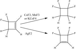 Fluorination of fluoro-cyclobutene with high-valency metal fluoride